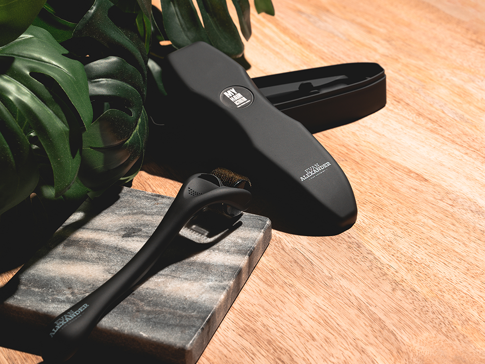 Rows of tiny titanium needles in our derma roller penetrate the top layer of the scalp to create hundreds of microscopic channels to optimize the hair-growing effectiveness of the products you already use. Plus, when your body responds to the micro-needling procedure, your body’s healing response kicks in by increasing blood circulation, activating stem cells and “sleeping” follicles, and stimulating dermal papillae.